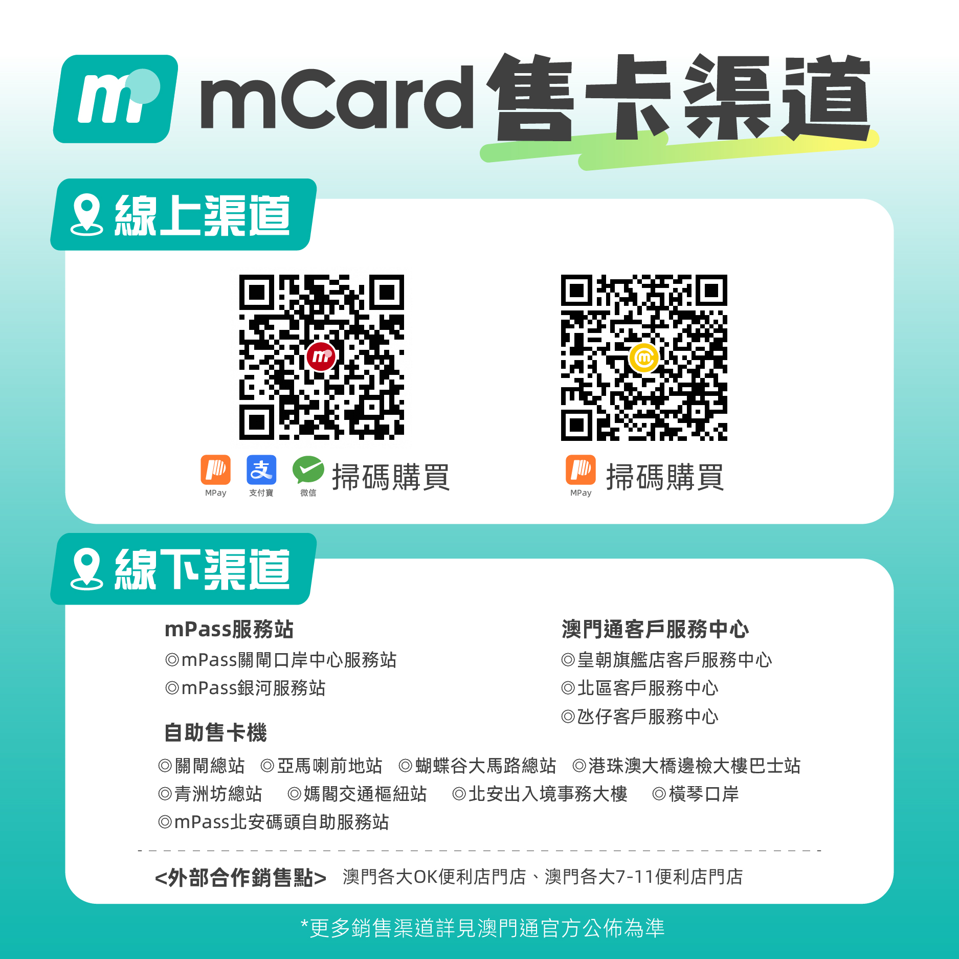 2024年2月1日起發售的新款澳門通卡均具備NFC加值功能,您可通過MPay應用程式添加澳門通卡進行雙向加值。