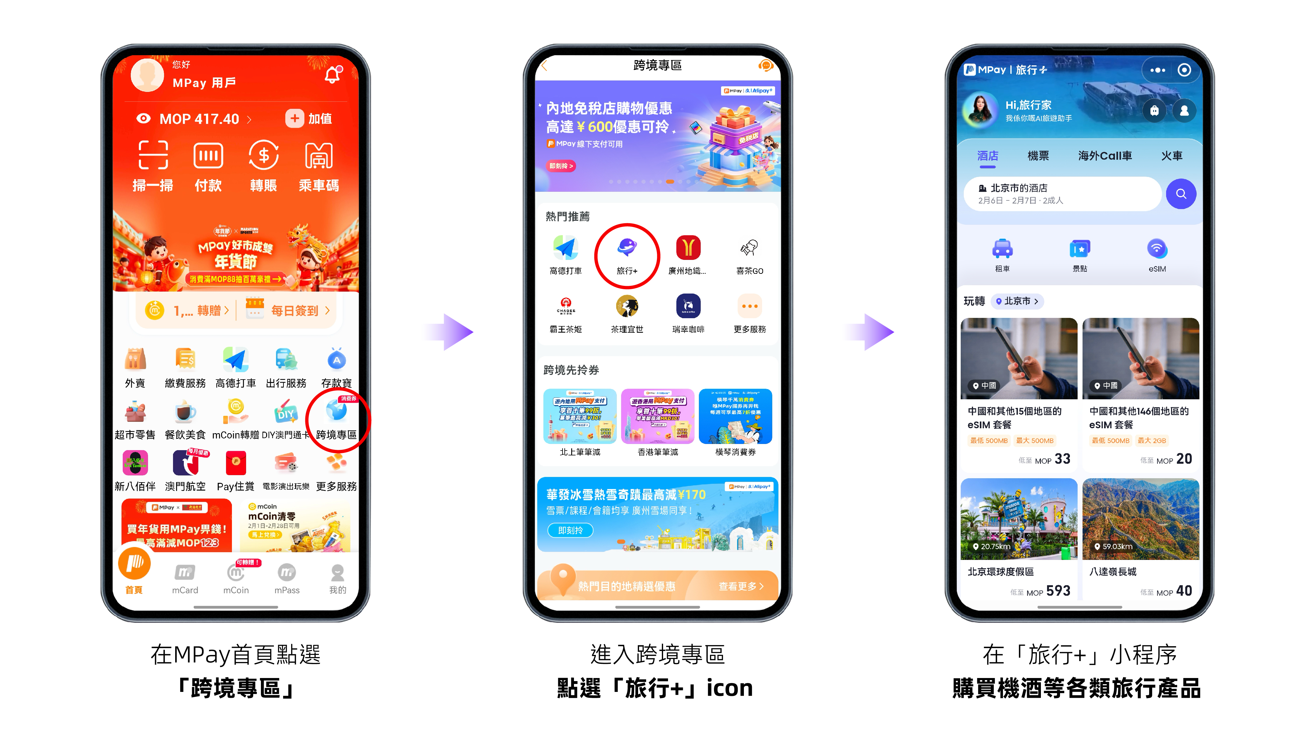 出發旅行前,澳門用戶只需於MPay「跨境專區」點選「旅行+」,即可一站式預訂酒店、機票、火車票,選購當地適用的eSIM套餐、熱門景點門票等產品。在海外旅行時,「旅行+」亦提供租車及海外Call車服務。如今,澳門用戶前往東南亞等地旅行,無需切換應用,即可透過該服務預訂Grab網約車,實現無縫出行。未來用戶還可透過文字或語音與Alipay+ Voyager AI旅遊助手互動,獲取覆蓋行前、行中及行後的全程AI智能助理服務。