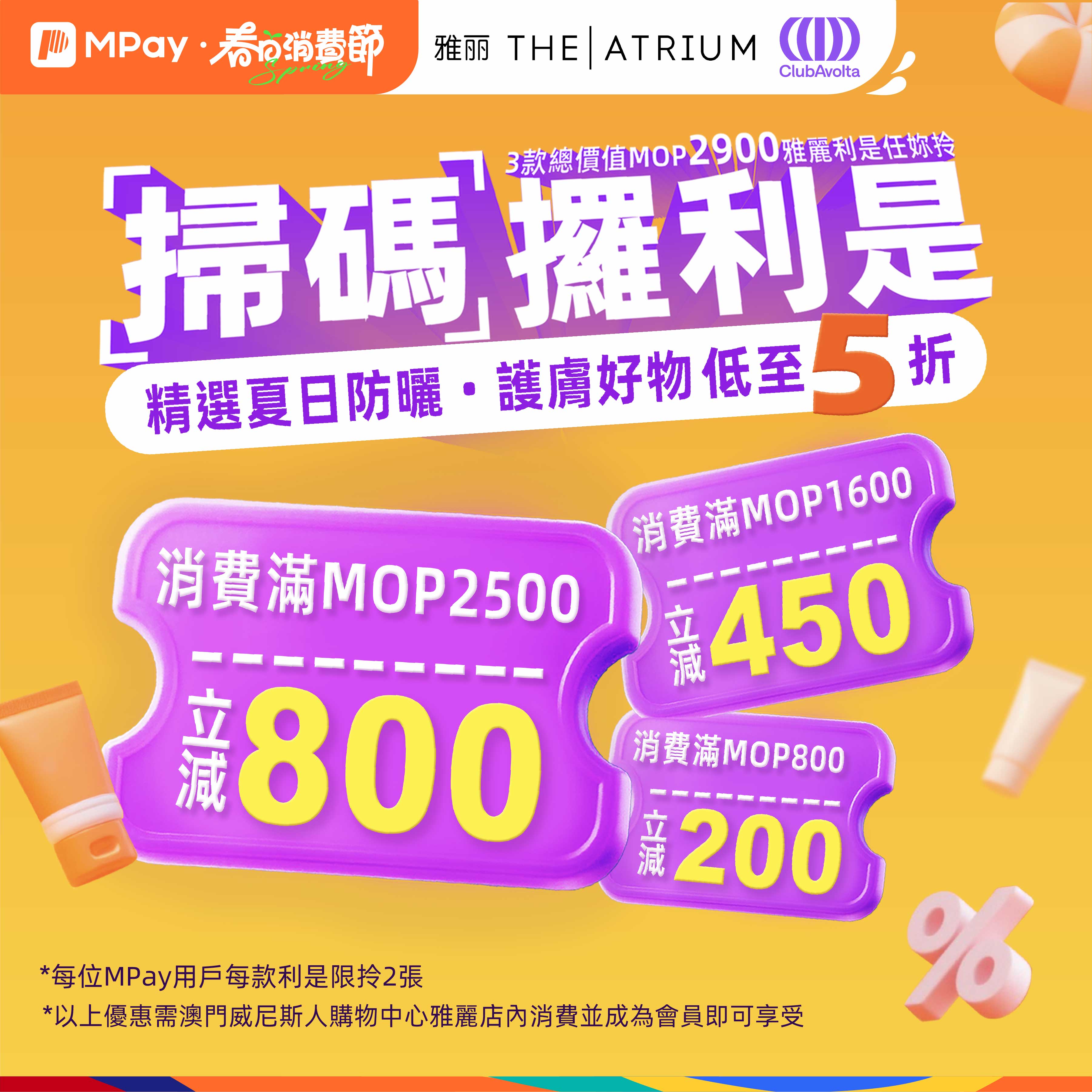 MPay用戶於雅麗線下門店埋單時,需按店員指引註冊成為會員後並全數用MPay付款方可獲得以上優惠,優惠於門店小票上展示。