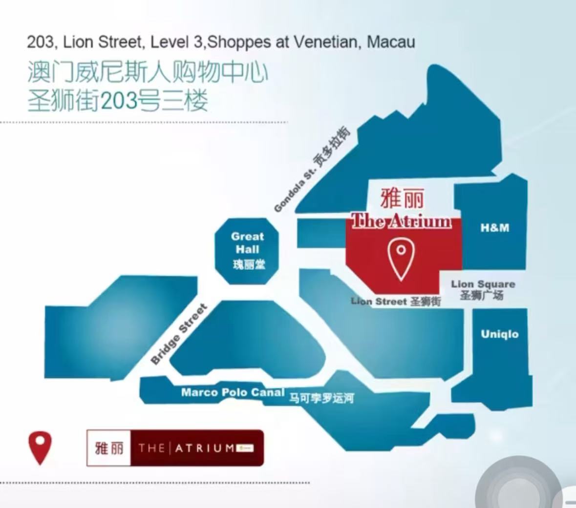 澳門威尼斯人購物中心聖獅街三樓203號舖 (+853 2882 8108)