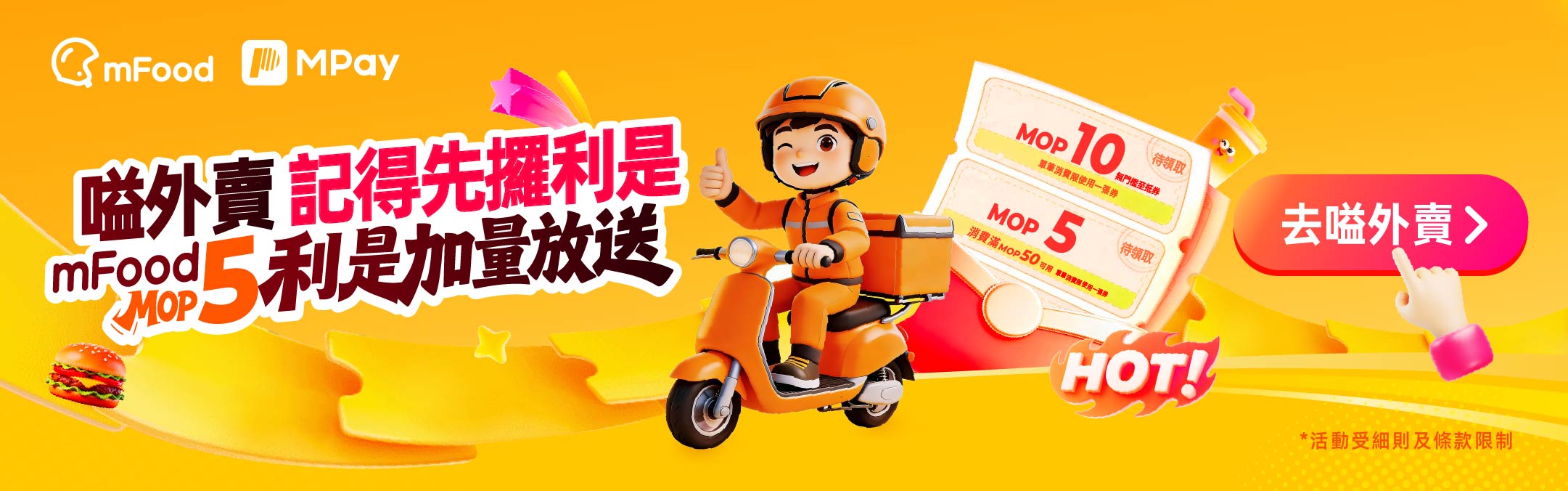 2026年4月4日至5月31日,mFood MOP50-5加碼派送!