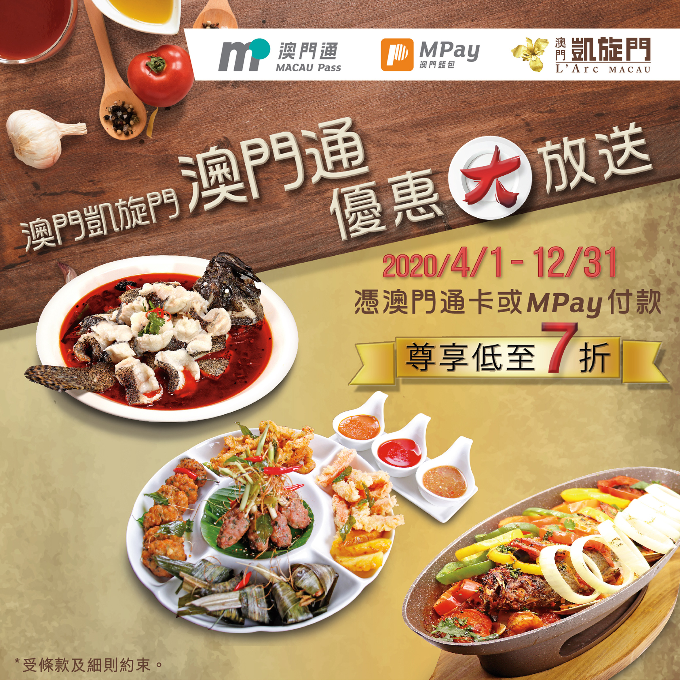 ✨於【凱旋廊(澳門凱旋門酒店)】消費使用MPay或澳門通卡全額支付可享😍😍😍【85折優惠】(15% off);