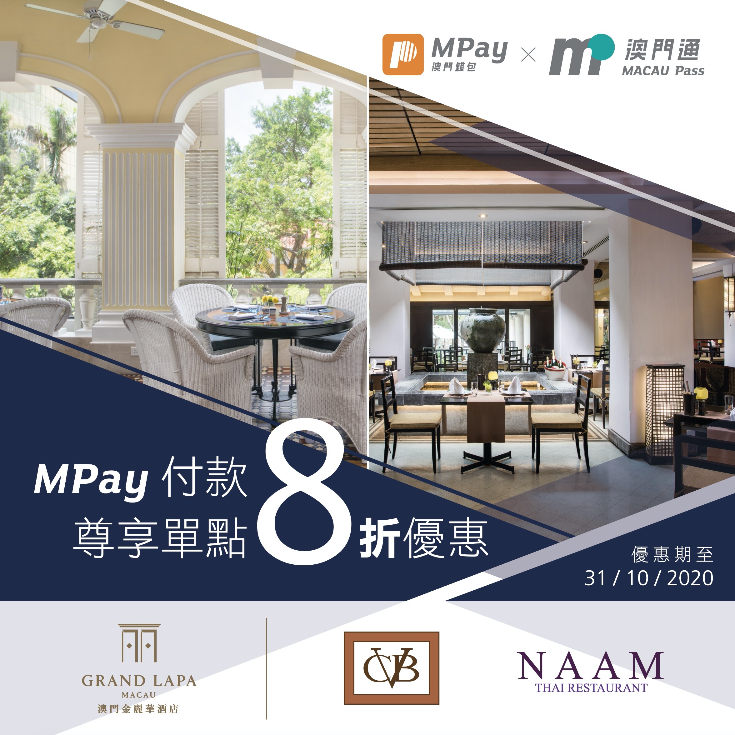 - 優惠必須使用 MPay 澳門錢包全額付款方可享用。